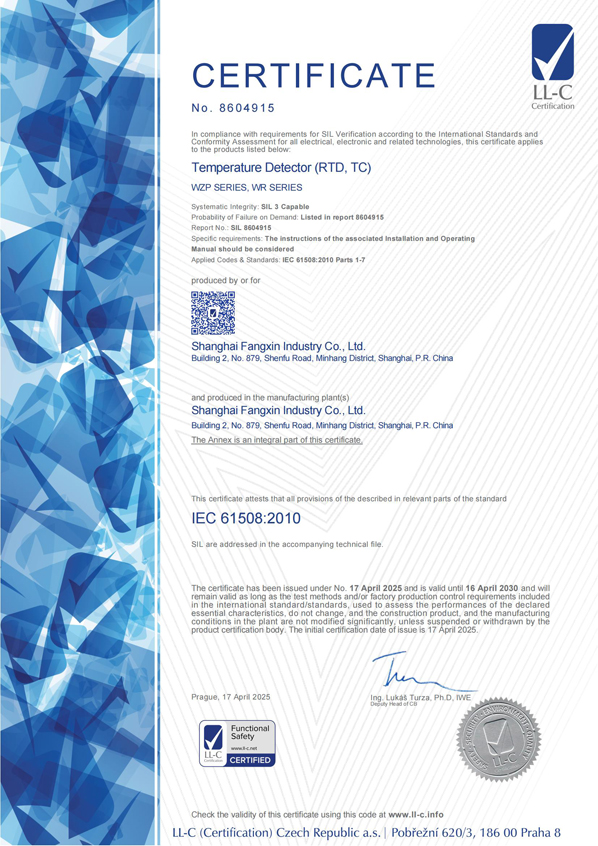 級精度產品制造計量許可證的極少數(shù)合法企業(yè)之一。并且率先采用了國際通用的分度號色標,從而使安裝在設備上的產品的分度號非常醒目,便于識別和更換,因此多年來受到熱工維檢人員的贊譽。